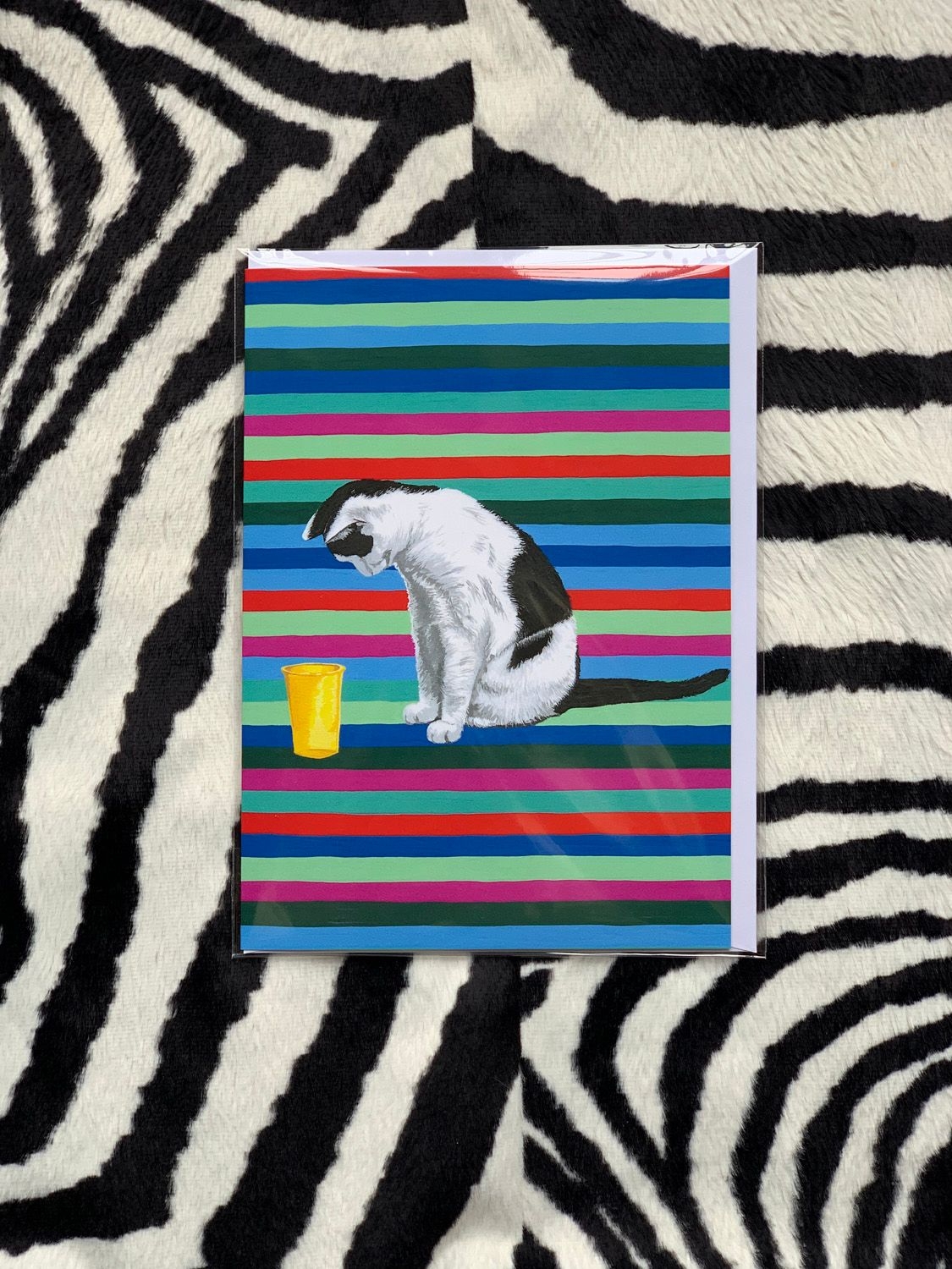 This greeting card –featuring an artwork from an ongoing ‘Cats on Stripes’ series– makes the perfect card for family, friends and feline fanatics.